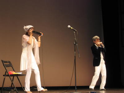 | 2012年3月11日 流山稲門会10周年記念コンサート 三井サンガーデン・ホテル 演奏曲目 ・私は泣いています(クロマチック×2、ポケットコード×2 タップダンスの伴奏をしました。ピアノ、ベースが 加わりました。 |